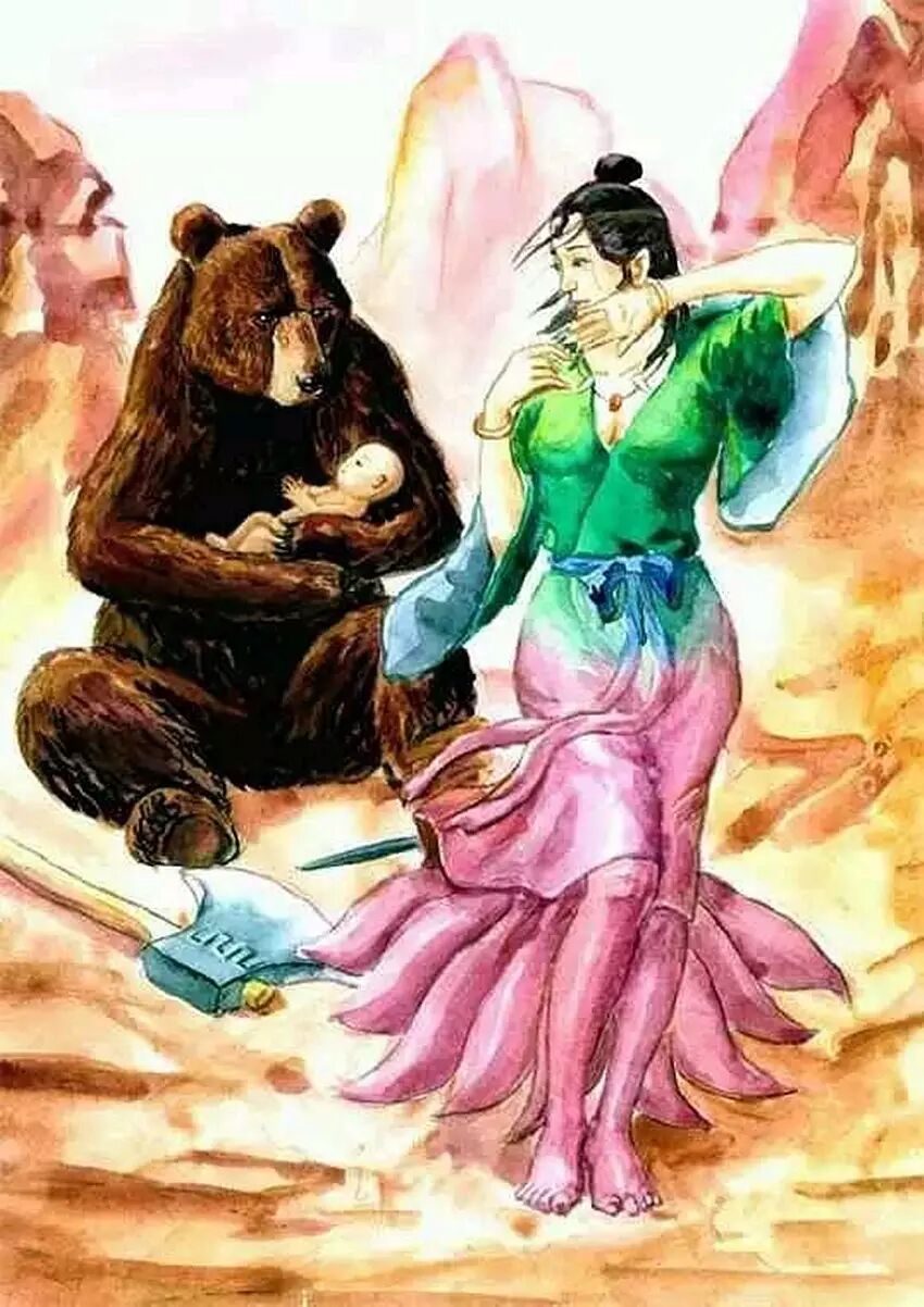 涂山氏,大禹之妻,传说为九尾狐狸精。中国上古神话中,夏族的始祖神为涂山氏,夏族就是日后建立中国第一个王朝夏的一个部落集团。据《淮南子》记载:「禹治洪水,凿轘辕开,谓与涂与氏曰:『欲饷,闻鼓声乃去。』禹跳石,误中鼓,涂山氏往,见禹化为熊,惭而去。至嵩山脚下化为石,禹曰:『归我子!』石破北方而启生。」女娇,涂山氏的女儿,禹妃子。