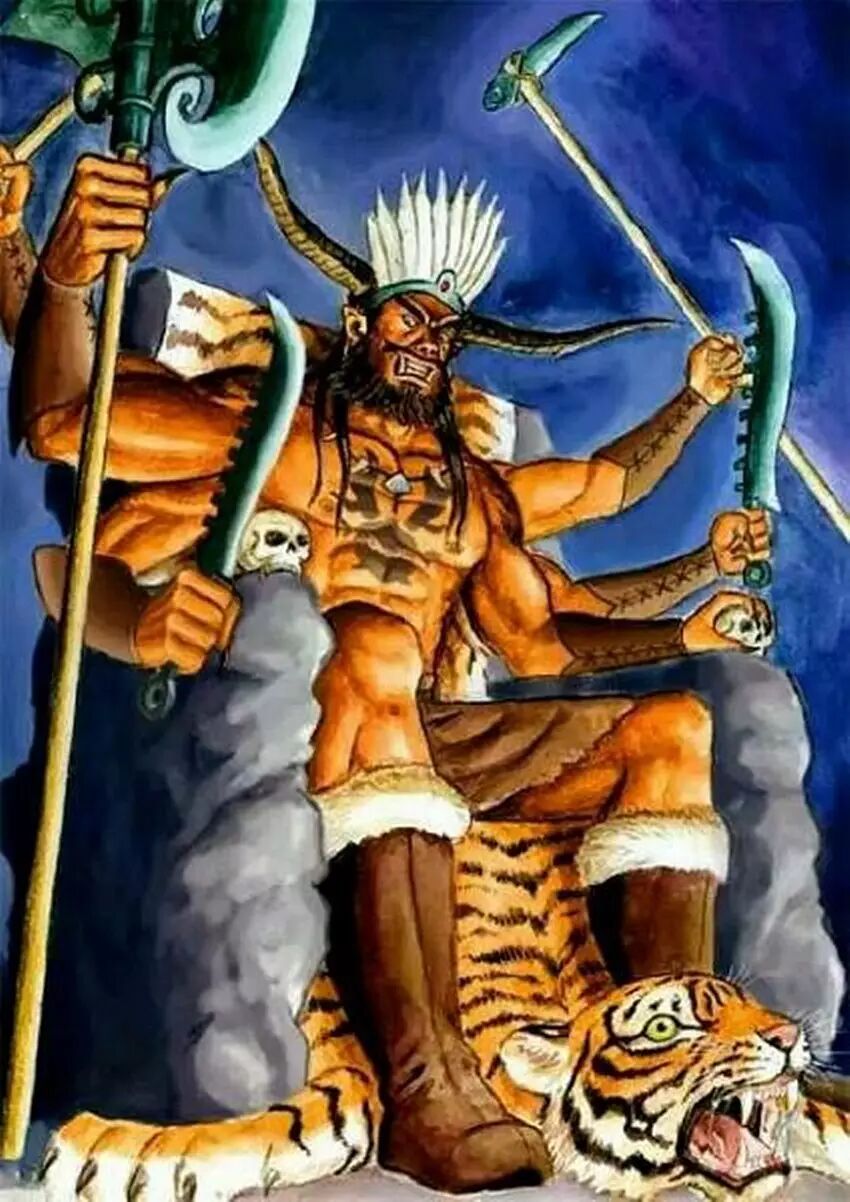 中华始祖之一。上古时代九黎族部落酋长,关于他的身份,有各种不同的解释。约在 4600 多年以前,黄帝战胜炎帝后,在今河北涿鹿县境内,展开了与蚩尤部落的战争(涿鹿之战),蚩尤战死,东夷、九黎等部族融入了炎黄部族,形成了今天中华民族的最早主体。亦有人认为,蚩尤即炎帝。