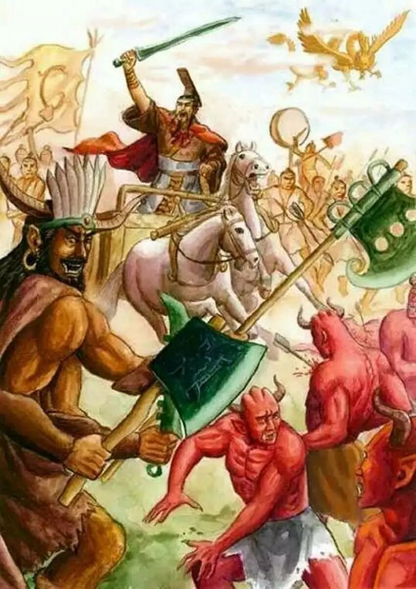 涿鹿之战,指的是距今约 4600 余年前,黄帝部族联合炎帝部族,与东夷集团中的蚩尤部族在今河北省涿县一带所进行的一场大战。「战争」的目的,是双方为了争夺适于牧放和浅耕的中原地带。涿鹿之战对于古代华夏族由野蛮时代向文明时代的转变产生过重大的影响。
