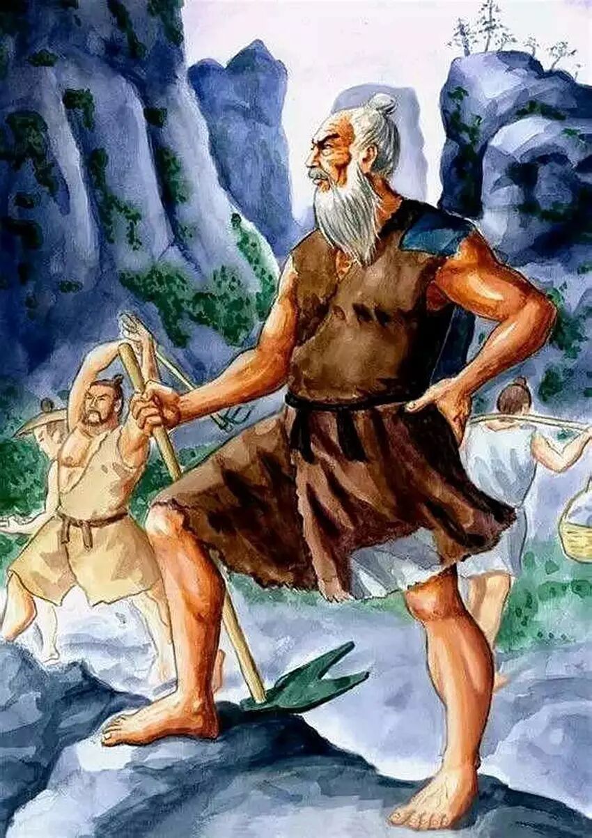 愚公家门前有两座大山挡着路,他决心把山平掉,另一个「聪明」的智叟笑他太傻,认为不能。愚公说:「我死了有儿子,儿子死了还有孙子,子子孙孙无穷无尽的,又何必担心挖不平呢?」后因感动天帝,所以天帝命夸娥氏的两个儿子搬走两座山。比喻只要有毅力就可以成功。