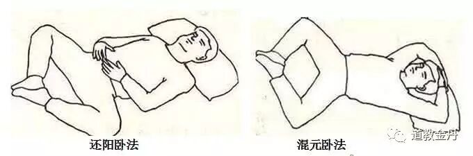 还阳卧:身体自然平躺,髋关节放松,腿似环,两脚心相对,脚后跟最好直对着会阴(如果能顶着会阴最好)两手心放于大腿根部附近,掌心向着腹部。仰卧由于着床面积大,压迫力较小,身体更容易放松,身体的放松加上一定的姿势,可以很快的把阳气和肾气充盈起来。肾阳气相当于命门的真火——一个生命力的大小关键就是看命门的阳气是否充足。摆这个姿势,就是为了更有利于肾阳气的充足。此式补肾的作用明显。