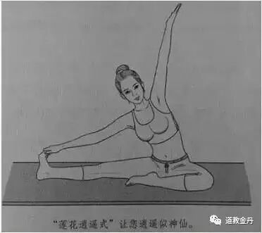 依上图示做,刚开始练习时,很难完全展开,你就靠着墙,背、腿和手臂都贴着墙,这样很快就找到平面侧展的感觉了。持续了1分钟,就会感觉有一股暖流流向肋部,真的好像阳光照进来一样。不论男女老幼,每天练习几分钟“莲花逍遥式”,就可以增强肝经的解郁能力,让您乐得逍遥在人间。