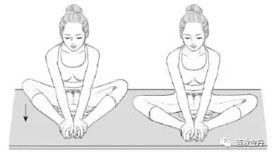 坐下来,屁股下用一个折成两个手掌厚的毯子垫一下。然后曲膝,使脚心相对,脚掌并拢,脚跟尽量往里靠。双手抓住脚尖,膝盖向两侧打开,尽量往地上贴,这就是“蝴蝶式”了。做这个动作的时候,脊背要挺直,双膝有节奏地向两边地板振动。